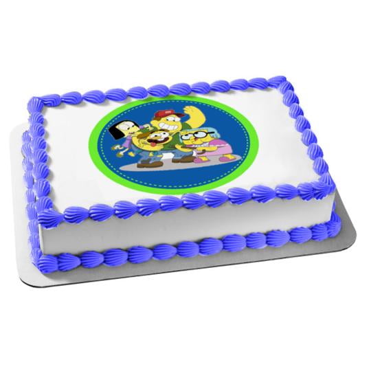Big City Greens Family Round Blue And Green Background Cricket Tilly Bill Gramma Edible Cake Topper Image Walmart Com